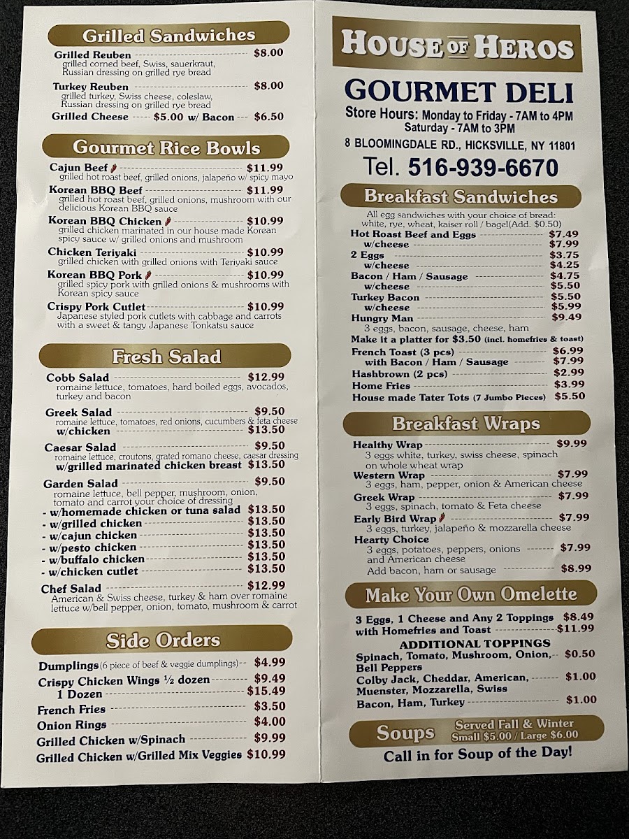 Welcome to House of Heros, a delightful eatery nestled at 8 Bloomingdale Rd, Hicksville, NY. Known for its family-run atmosphere and quick service, this hidden gem serves an enticing menu that caters to breakfast lovers and sandwich aficionados alike.